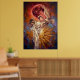 Red Moon Crane Symbolic Art Poster