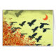 Red Moon Rising Vintage Birds Flying in Flocks Note Card