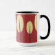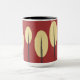 This red mug has a light yellow and black design that will add style to any occassion.
