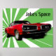 Red muscle car against a dynamic background of green rays. Add your own text.