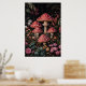 Discover a mesmerising fantasy world in this hyper-realistic oil painting. A cluster of red mushrooms with white spots stands tall in a dark forest, surrounded by vibrant flowers and plants. The symmetrical composition and glowing effects create a truly magical atmosphere.