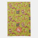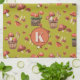 Red Mushrooms Pattern Monogram Initial Tea Towel
