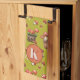 Kitchen towel with red mushrooms design and place for a single initial. Moss green dish cloth with Amanita mushrooms, in baskets and singles they make a fun design to use in any kitchen. Place your single initial in bold off-white text with shadow effect, over a light red circle near the bottom centre of the towel. Makes a nice, personalised housewarming gift.