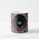 Red music speakers on a cracked wall coffee mug