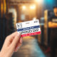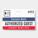 Visitor pass badge with a simple design in black, white, navy blue, and red. Authorised guest is written across the guest badge, but you can change the wording to suit your needs. Personalise further with your business logo and the name of the company.