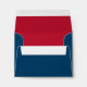 This customisable navy blue and red baseball Bar Mitzvah A2 size RSVP envelope would look great with your outgoing baseball-themed Bar Mitzvah invitation set. This custom A2 envelope has a navy blue background with a brown leather ball glove and a red and white baseball image in the centre of the back flap. Your family name and address are in white on the centre of the envelope as it will be mailed back to you. It's sure to stand out in the mail and will leave a lasting impression on your invited guests. It's a suitable envelope to use for any baseball theme event by. The inside of the envelope is red.