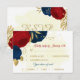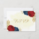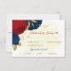 Romantic dark red & navy blue flowers with gold leaves botanical wedding response card with meal choice option.