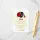 red & navy blue flowers gold leaves wedding enclosure card