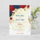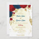 red & navy blue flowers gold leaves wedding invitation