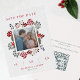 Red & Navy Winter Berries Photo & QR Code Wedding Save the Date