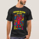This radiant red neon alien with playful antennae and a wide pink smile beams with quirky energy. Surrounded by colourful abstract symbols on black, it’s a funky pop art design perfect for festivals, streetwear, or anyone who loves bold and cheerful statement t-shirts.