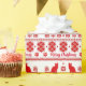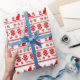 Red Nordic Snowflake Sitting Cat Christmas Wrapping Paper