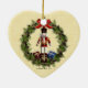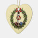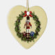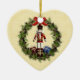 Beautiful red nutcracker doll in wreath heart ornament. This lovely double sided holiday art ceramic ornament features a red nutcracker in the centre of a holiday wreath with pine cones and berries! A wonderful addition to your ornament collection or holiday decor and a great gift for family, friends and someone who loves the nutcracker!