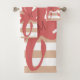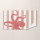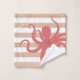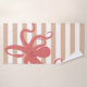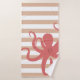 This trendy modern beach style bath towel set contains a red octopus against a white and sand striped background.