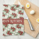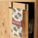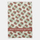 A light yellow kitchen towel with a red olive pattern . Personalise with your text or keep it as it is .