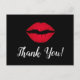Red Ombre Lipstick Kiss Thank You Black Postcard