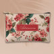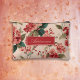 A lively red hibiscus watercolor floral pattern on a soft pink background.