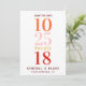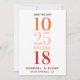 This save the date card with red, pink and orange lettering is so unique and adds a splash of colour and fun! The colour block design, typography and over sized numbers are sure to make a statement.