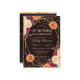 Elegant Boho Watercolor Red and Orange fall autumnal flowers and foliage design with gold geometric frame, gold glitter confetti and rustic wood background