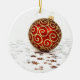 Round ceramic ornament with an image, on both sides, of a beautiful red and gold Christmas ornament on silver stars. See the entire Christmas ornament collection under the HOME category in the HOLIDAYS section.