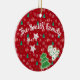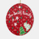 Add timeless elegance to your Christmas tree with this personalizable ceramic ornament featuring a festive design of sparkling Christmas trees, colorful ornaments, and delicate snowflakes.