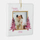 Celebrate the holidays elegantly using our Red Pagoda Christmas Trees 2-Photo Peace Ornament. Featuring beautiful red pagoda Christmas trees and the words "Peace on Earth" on the front, this ornament also includes a pagoda tree pattern on the back. Customise it with two of your favourite photos and the year to create a timeless keepsake. This ornament can be proudly displayed on your Christmas tree, in a special place in your home, or even hung on your car's rearview mirror. Explore our matching ornaments and items in the Chinoiserie Pagoda Christmas Tree Collection to complete your festive décor!