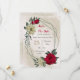 Unique save the date card featuring romantic red and pale yellow flowers and green leaves botanical geometric frame.