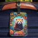A red panda sits amidst a colourful garden, surrounded by vibrant flowers and fluttering butterflies.