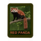 A digital painting of a Red Panda on a tree branch. The red panda (Ailurus fulgens, or shining-cat), which resembles a racoon, lives in the cool temperate bamboo forests in Sichuan and Yunnan Provinces in China, in the Himalayas, and in Myanmar. Locations with the highest density of red pandas include an area in the Himalayas that has been proposed as having been a refuge for a variety of endemic species in the Pleistocene. Red pandas were once thought to be closely related to the giant panda, but genetics has shown they are more closely allied with the racoon and weasel families. The animal is now considered a living fossil and only distantly related to the Giant Panda (Ailuropoda melanoleuca) , with which they share part of their range. Their common ancestor can be traced back to the Early Tertiary Period tens of millions of years ago, with a wide distribution across Eurasia. In 2004, a tooth from a red panda species never before recorded in North America was discovered at the Grey Fossil Site in Tennessee. The tooth dates from 4.5–7 million years ago. In August 2010, archaeologists uncovered red panda fossil remains in Washington County in the US state of Tennessee. Although none are known to exist in the wild in North America today, it is believed the red panda thrived in the mountains of eastern Tennessee approximately 4.5 million years ago. Slightly larger than a domestic cat, it has reddish-brown fur, a long, shaggy tail, and a waddling gait due to its short front legs. The average lifespan is 8–10 years, but individuals have been known to reach 15 years. They weigh between seven and 14 pounds. Their red-and-white markings blend in with the red mosses and white lichens that grow on the trees in which they live. Their soft, dense fur covers their entire body—even the soles of their feet. Secretive and gentle creatures, adults are solitary except during mating season. They are generally quiet except for some twittering, tweeting, and whistling communication sounds. They have been reported to be both nocturnal and crepuscular, sleeping on tree branches or in tree hollows during the day and increasing their activity in the late afternoon and early evening hours. They sleep stretched out on a branch with legs dangling when it is hot, and curled up with its tail over the face when it is cold. They are very heat sensitive, with an optimal “well-being” temperature between 63 and 77 °F, and cannot tolerate temperatures over 77 °F. Shortly after waking, red pandas clean their fur like a cat, licking their front paws and then rubbing their back, stomach and sides. They also rub their back and belly along the sides of trees or rocks. Then they patrol their territory, marking it with urine and a weak musk-smelling secretion from their anal gland. They search for food running along the ground or through the trees. Red pandas may alternately either use their forepaws to bring food to their mouth or place food directly into the mouth. Like the Giant Panda, they cannot digest cellulose, so they must consume a large volume of bamboo to survive. Their diet consists of about two-thirds bamboo, but they also eat mushrooms, roots, acorns, lichen, and grasses. Occasionally, they supplement their diet with fish and insects. They do little more than eat and sleep due to their low-calorie diet. Their broad teeth and strong jaws allow them to chew bamboo's tough leaves and stalks. The animals share another characteristic with the giant panda, they have a small, bony projection on their wrists, a “false thumb,' that helps them grip bamboo stalks. Reproduction: After a gestation of about 134 days, litters of one to four young are born. Young stay in the nest for about 90 days, remain close to their mother until the next mating season begins, and reach adult size at about 12 months. Adult red pandas lead solitary lives. Conservation: Red pandas are listed as vulnerable on the IUCN Red List of Threatened Species because of habitat loss. Worldwide population estimates range from fewer than 2,500 individuals to between 16,000 and 20,000 individuals. Although red pandas are protected by national laws in their range countries, their numbers in the wild continue to decline mainly due to habitat loss and fragmentation, poaching, and inbreeding depression. Predators of the red panda include the snow leopard, martens (Mustelidae), and humans. If they feel threatened or sense danger, they may try to escape by climbing a rock column or tree. If they can no longer flee, they stand on their hind legs to make themselves appear larger and use the sharp claws on their front paws to defend themselves. The primary threats to red pandas are direct harvest from the wild, live or dead, competition with domestic livestock resulting in habitat degradation, and deforestation resulting in habitat loss or fragmentation. The relative importance of these factors is different in each region, and is not well understood.For instance, in India the biggest threat seems to be habitat loss followed by poaching, while in China the biggest threat seems to be hunting and poaching. A 40% decrease in red panda populations has been reported in China over the last 50 years, and populations in western Himalayan areas are considered to be lower. Deforestation can inhibit the spread of red pandas and exacerbate the natural population subdivision by topography and ecology, leading to severe fragmentation of the remaining wild population. Fewer than 40 animals in 4 separate groups share resources with humans in Nepal's Langtang National Park, where only 6% of 660 sq mi is preferred red panda habitat. Although direct competition for food with domestic livestock is not significant, livestock can depress bamboo growth by trampling. Small groups of animals with little opportunity for exchange between them face the risk of inbreeding, decreased genetic diversity, and even extinction. In addition, clearcutting for firewood or agriculture, including