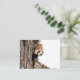 Red panda peeking out from a tree trunk card