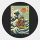 Red Panda Samurai Surfing Japanese Wave Classic Round Sticker