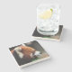 The coasters are gorgeous, a quality feel and heavy weight. They look like a precious archeological find. A rustic stone juxtaposed with a modern floral black and white print. I like the way the print goes slightly imperfect on the cut stone edges giving them a kind-of natural beauty.