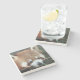 The coasters are gorgeous, a quality feel and heavy weight. They look like a precious archeological find. A rustic stone juxtaposed with a modern floral black and white print. I like the way the print goes slightly imperfect on the cut stone edges giving them a kind-of natural beauty.