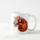 A cute painting of a red panda (also known as a lesser panda) pouring tea into a teacup with the Japanese character for "tea" on it.