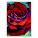 with original design of red English rose macro flower from original watercolour artwork painting by Sacha Grossel Art. Large close up of crimson flower with blue highlights inspired by love and passion.
