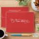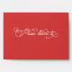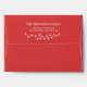 Pretty red Christmas envelope in warm red with a liner printed with a pastel string light pattern in red, pink, mint, and yellow, with Please deliver to in a vintage swirly script on the front. Add your family name and address on the flap.