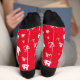 Novelty pirate socks with a pattern of anchors, ships, and smiling skull and bones. They have a red and white colour scheme. Simply add these socks to your cart, get them home, and then enjoy them wherever your feet may go.