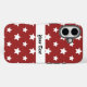 Personalised design with seamless red pattern with white stars; with white label and customisable text template for your name or message