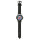My husband loves the watch, he likes the dial, the graphics, the band, and it keeps perfect time.