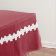 This pretty holiday tablecloth features a cranberry red background that you can change to any colour you want easily before ordering! Lovely at the table all season long, the centre has a pine cones and evergreen branches wreath with white text that reads Peace & Joy. A white rick rack design trim surrounds the tablecloth on all four sides.