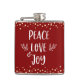 Red Peace Love Joy Modern Typography Gold Confetti Hip Flask