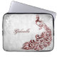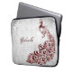 Protect your laptop while you're on the go with a Red Peacock Personalised Laptop Sleeve. Sleeve design features a vibrant red peacock resting on a white leaf vine against a grey grunge background. Additional gift items available with this design as well as a variety of colours. Personalise for yourself or makes a great gift.