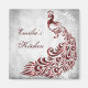 Add a touch of colour to your kitchen with a Red Peacock Personalised Magnet. Magnet design features a vibrant red peacock, a soft white leaf vine against a light grey grunge background with an area to personalise with your name. Additional gift items available with this design as well as a variety of colours.