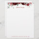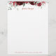 A watercolor floral letterhead stationery featuring watercolor painted deep red peonies and sprays of silver eucalyptus greeneries.