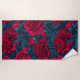 Red peony garden on dark blue beach towel