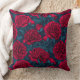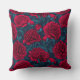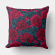 Red peony garden on dark blue cushion