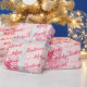 Red Personalised Merry Christmas Script Floral Wra Wrapping Paper