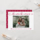 Photo Christmas Pregnancy Announcement Cards. Expecting parents! Modern red hand lettered typography script "the more the merrier" text card to share your happy news with family and friends in the holiday season. At the backing snowflakes on red colour background. You can personalise the design by replacing the sample text and horizontal photo. #3344