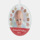 “First Christmas.” Your custom photo of the new baby, along with a Christmas cookie wreath and playful white script typography on a red band, helps you usher in Christmas and New Year. Feel the warmth and joy of the holiday season whenever you use this stylish and modern personalised photo keepsake glass ornament. Perfect for the newly proud parents, grandparents, as well as other relatives!