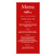 Birthday party menu card for both him and her. Personalise and add a name, age, date and the menu. A red background. White coloured letters.